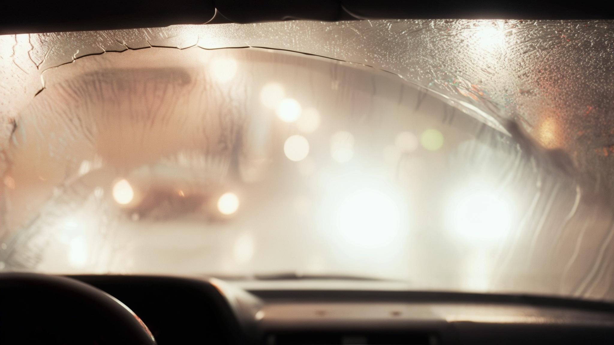 배기가스, 먼지, 왁스 잔여물 등 다양한 오염물질이 유리에 쌓이며 유막이 생성됩니다.